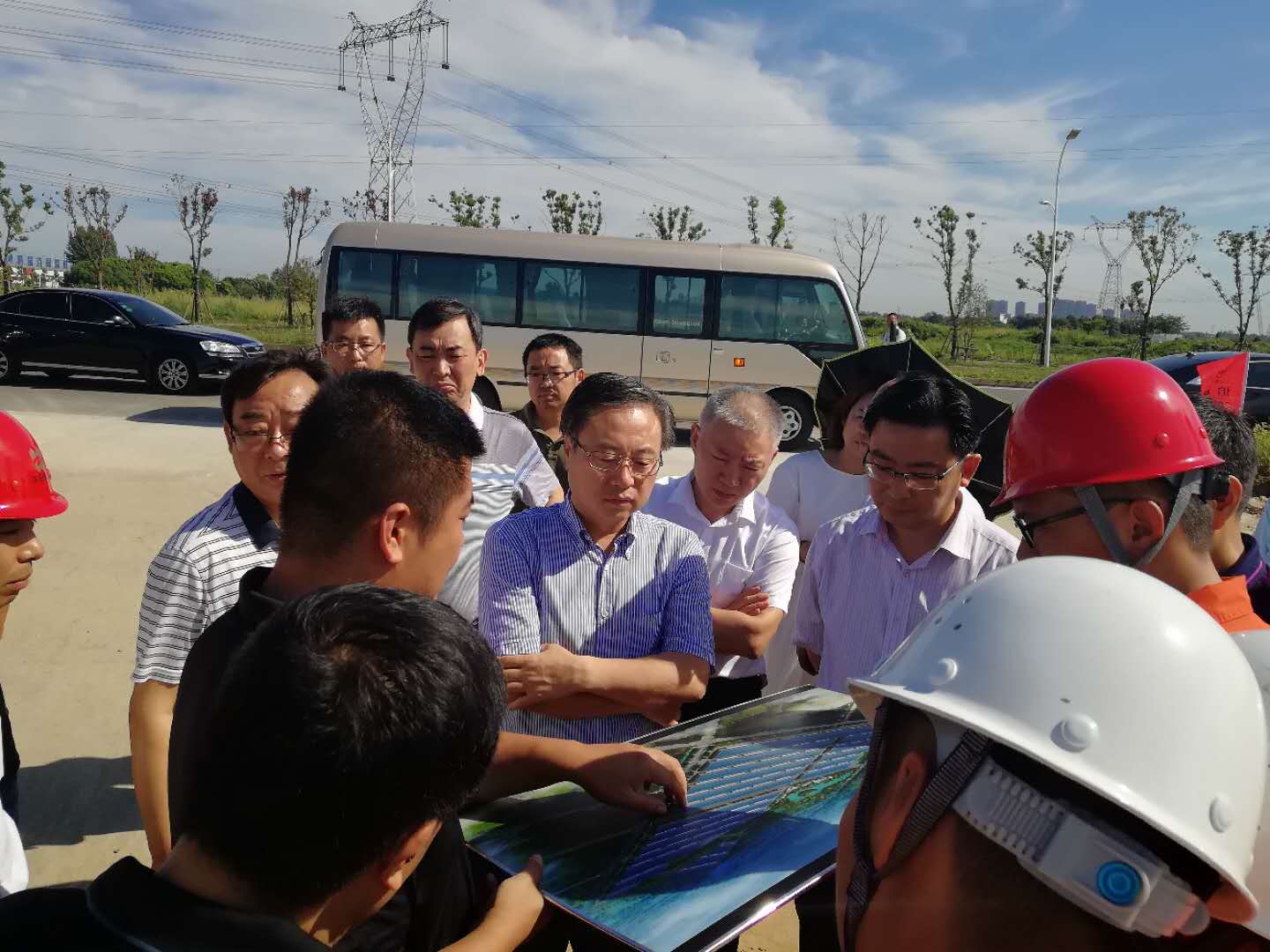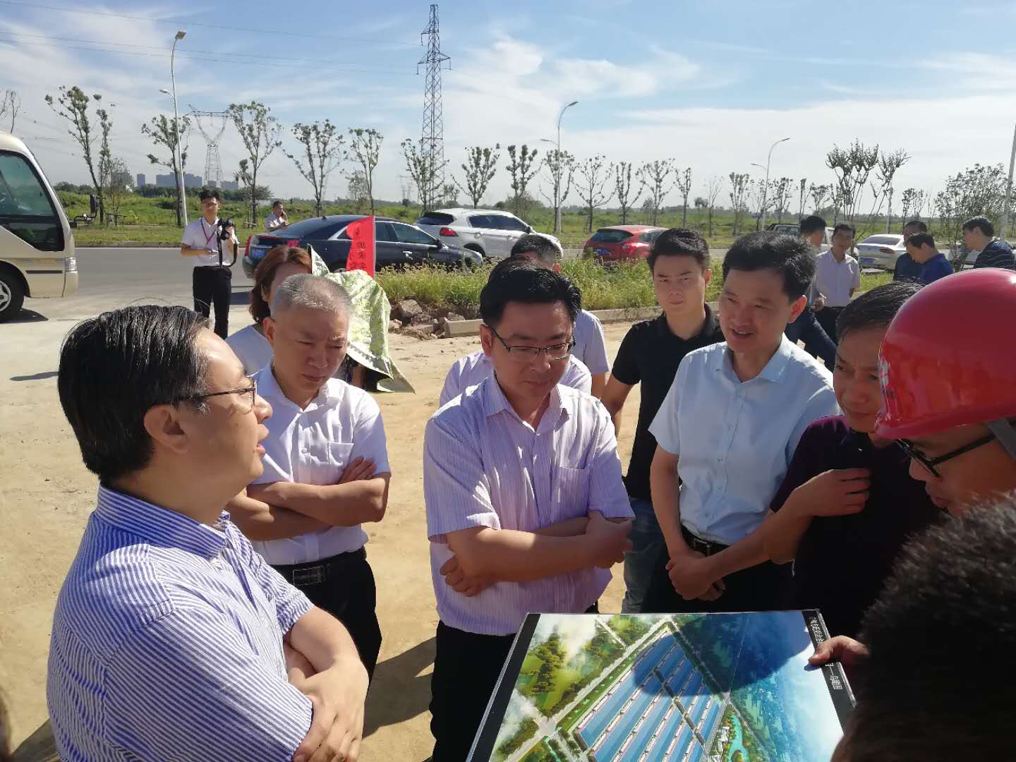 7月17日上午,市委常委、常务副市长曹哨兵一行赴芜湖精铝新材料产业园和我司承建的园区周边基础设施建设PPP项目(一期)调研,市政府秘书长汤德余、副秘书长谢启庆、市财政局(国资委)局长(主任)童宗新、市国土资源局局长金玉峰、市发改委副主任王爱清、弋江区委副书记、区长欧冬林和我司董事长沈世跃陪同调研。