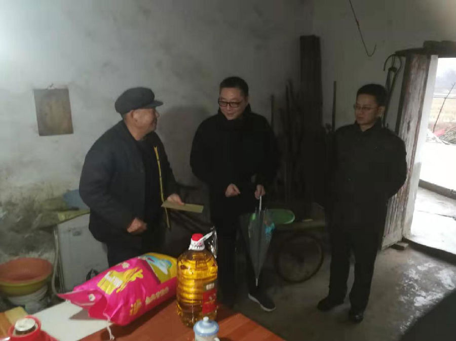 走访慰问中,沈世跃一行深入张业顺、张兴祥等8户贫困户家中,亲手送上大米、食用油等慰问品及慰问金。与困难群众面对面交流,详细询问他们近期家庭情况、生活状况、收入来源、身体状况等,嘱咐他们多注意身体,鼓励他们要有积极向上的心态,祝愿他们过一个愉快欢乐的春节。