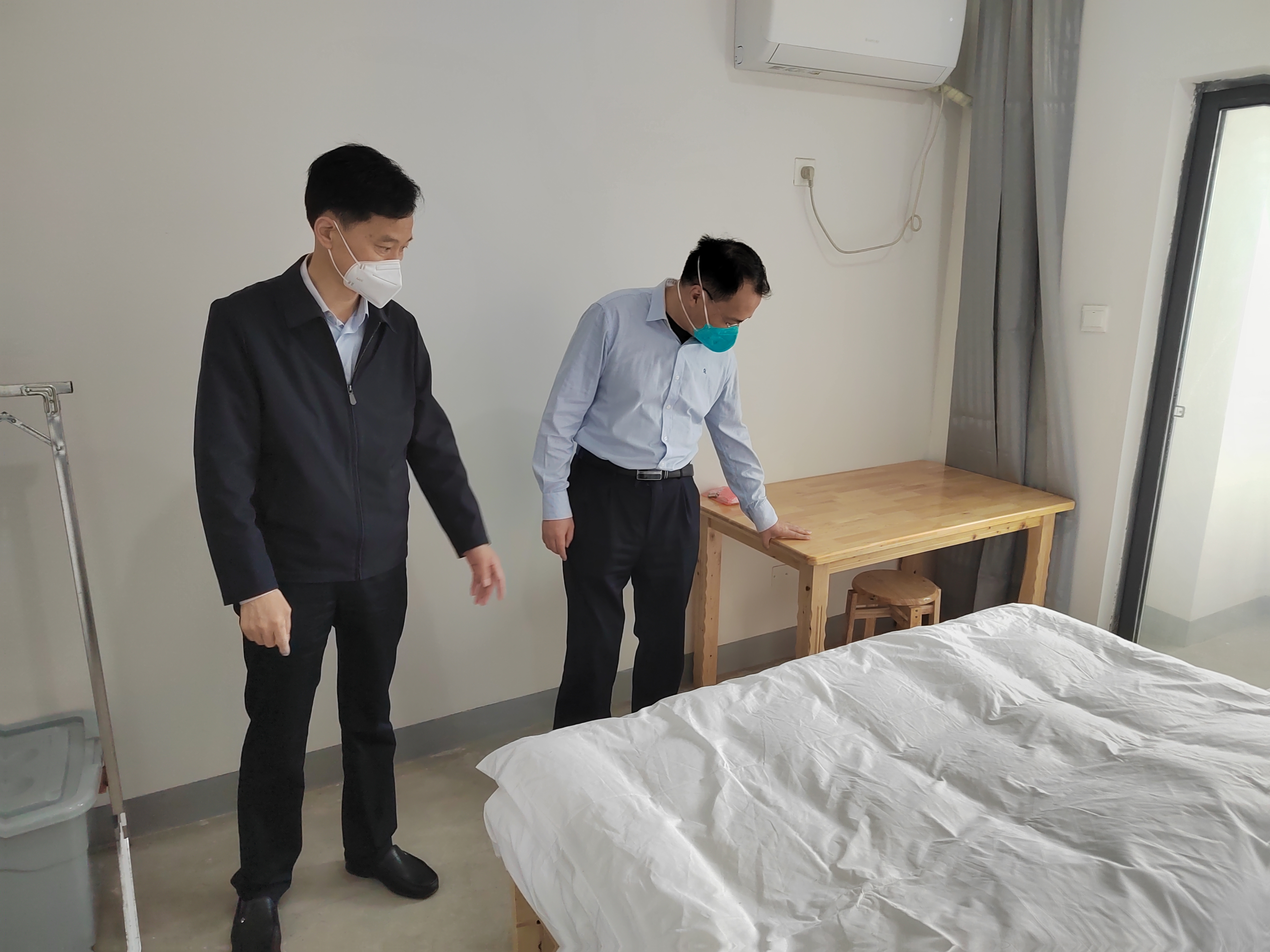 蔡毅副市长一行认真听取健康驿站改造建设情况介绍,详细了解施工组织、安全、进度等方面情况,实地查看完成改造楼栋的房间设施设备配套、环境卫生等情况。了解到公司面对时间紧、人手少、任务重的情况,顶住压力、昼夜奋战,在最短的时间内交付2684套隔离房源,蔡市长表示充分的肯定。