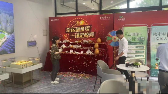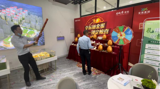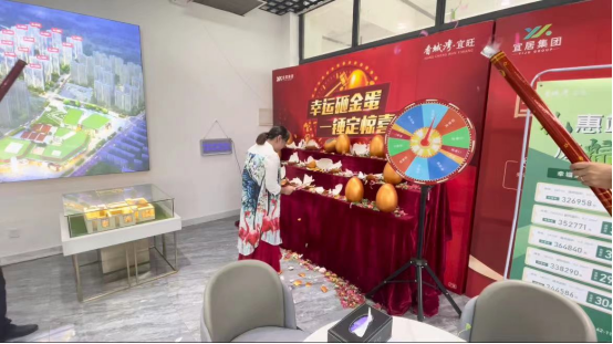 6月随着气温的不断升高,香城湾·宜旺营销中心现场也是异常火爆,成交不断。众多来访客户参与幸运大转盘赢得活动奖品,把现场氛围推向高潮,彩带纷飞更增添了节日的喜悦氛围。
