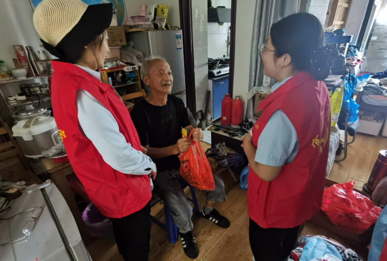 观影结束后,对于腿脚不便,不能到场的独居老人,物业工作人员采用上门慰问的形式,为老人们讲述红色故事,使老人们感受小区的温暖氛围。