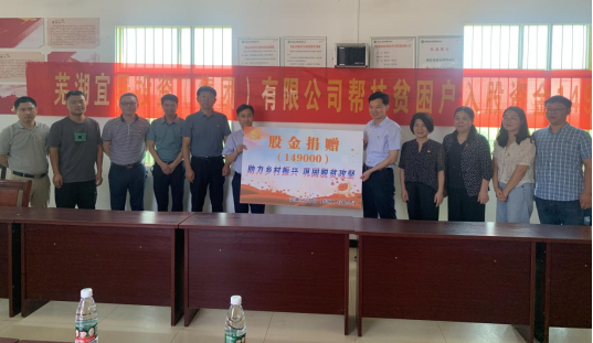 bv伟德官网公司为进一步落实新时代基层党建“双联双应”工作,整合引入社会资源推进乡村振兴。首先来到了凤凰山村村委会,与村基层干部进行座谈交流,并对凤凰山村进行了股金捐赠,出资149000元帮扶蜀山镇凤凰山村149户(每户1000元)建档立卡脱贫户认购党组织领办合作社股份。
