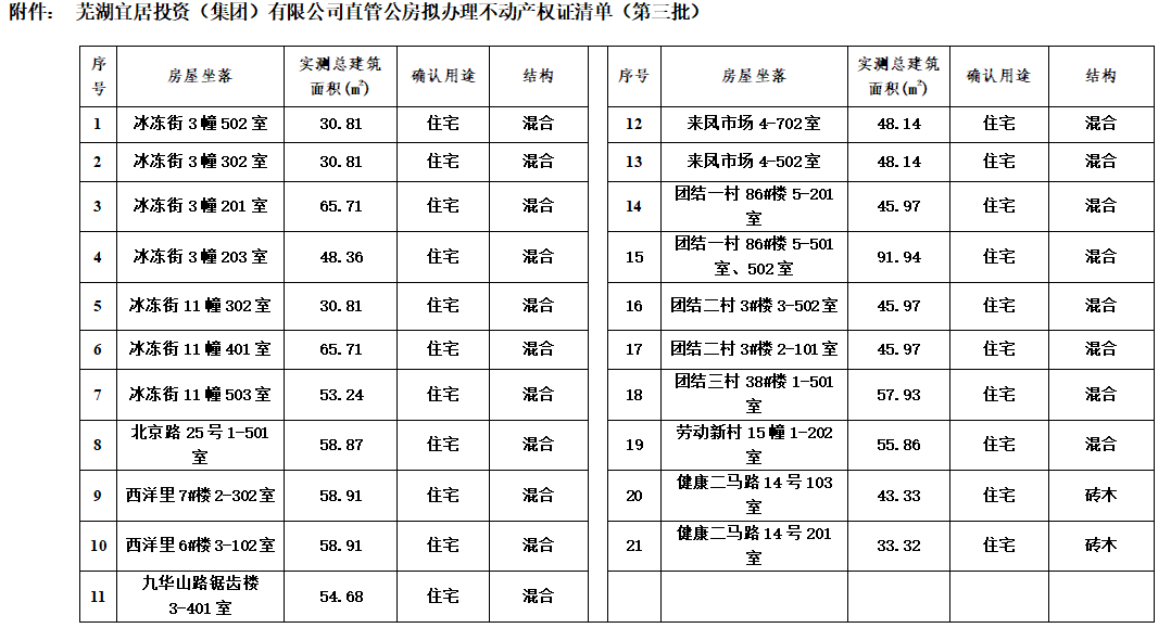 为加强我司的直管公房管理,根据市政府相关文件要求,我司近期将对直管公房分批次办理不动产权证,现将第三批直管公房办证清单向社会各界予以公告。