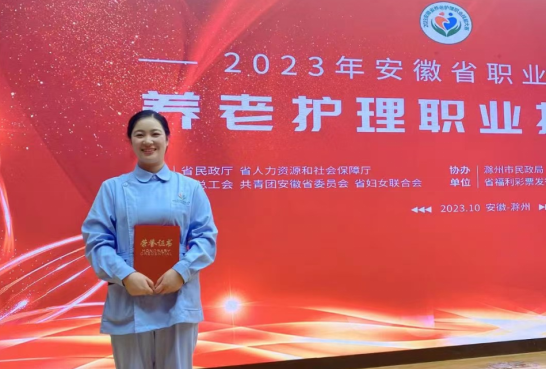 10月20日至21日,由省民政厅、省人社厅、省总工会、团省委、省妇联共同主办的2023年安徽省职业技能竞赛“养老护理职业技能大赛”赛项在滁州城市职业学院举行,来自全省各市16支代表队的49名养老护理员同台竞技。经过激烈角逐,bv伟德官网养老公寓助理院长周蓉同志喜获二等奖。