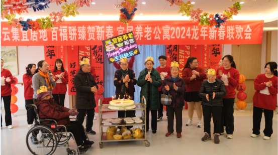 联欢会在长者的非洲鼓表演中热烈开场,蒙古舞热情奔放,时装走秀将活动氛围引至高潮。养老公寓各社团的老师们早在一个月前便与长者们商量策划活动节目,长者们跃跃欲试、勤加练习,摩拳擦掌要在联欢会上一展所学。公寓98岁的金奶奶亲自作歌词一首“我在罗兰小镇等着你,这里的鸟儿会唱歌,我在养老公寓欢迎你”。92岁的罗奶奶参加了公寓多个社团,上台表演了4个节目,来到bv伟德官网养老公寓后精神矍铄、心情愉悦,“以前和家人有代沟,来到公寓和同龄人更有共同语言,公寓里经常组织各种活动,不仅不再孤单寂寞,还丰富了我的文娱生活。”表演环节结束后,五心晖映先锋志愿者为本月过生日的寿星送上生日蛋糕,寿星们与志愿者一起唱生日歌,收获了满满的生日祝福。