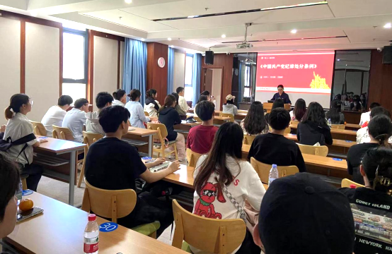 红色基地游览活动结束后,金晖公司党支部特邀安徽信息工程学院党支部书记王胜男为金晖公司党支部全体党员和安徽信息工程学院的党员、团员们,以《全面解读〈中国共产党纪律处分条例〉》为题教授专题党课。王书记结合实例生动地阐述讲解,党员和团员们深受教育,纷纷表示今后将党纪学习教育与工作、学习相结合,时刻增强自我约束,提高腐败免疫能力。